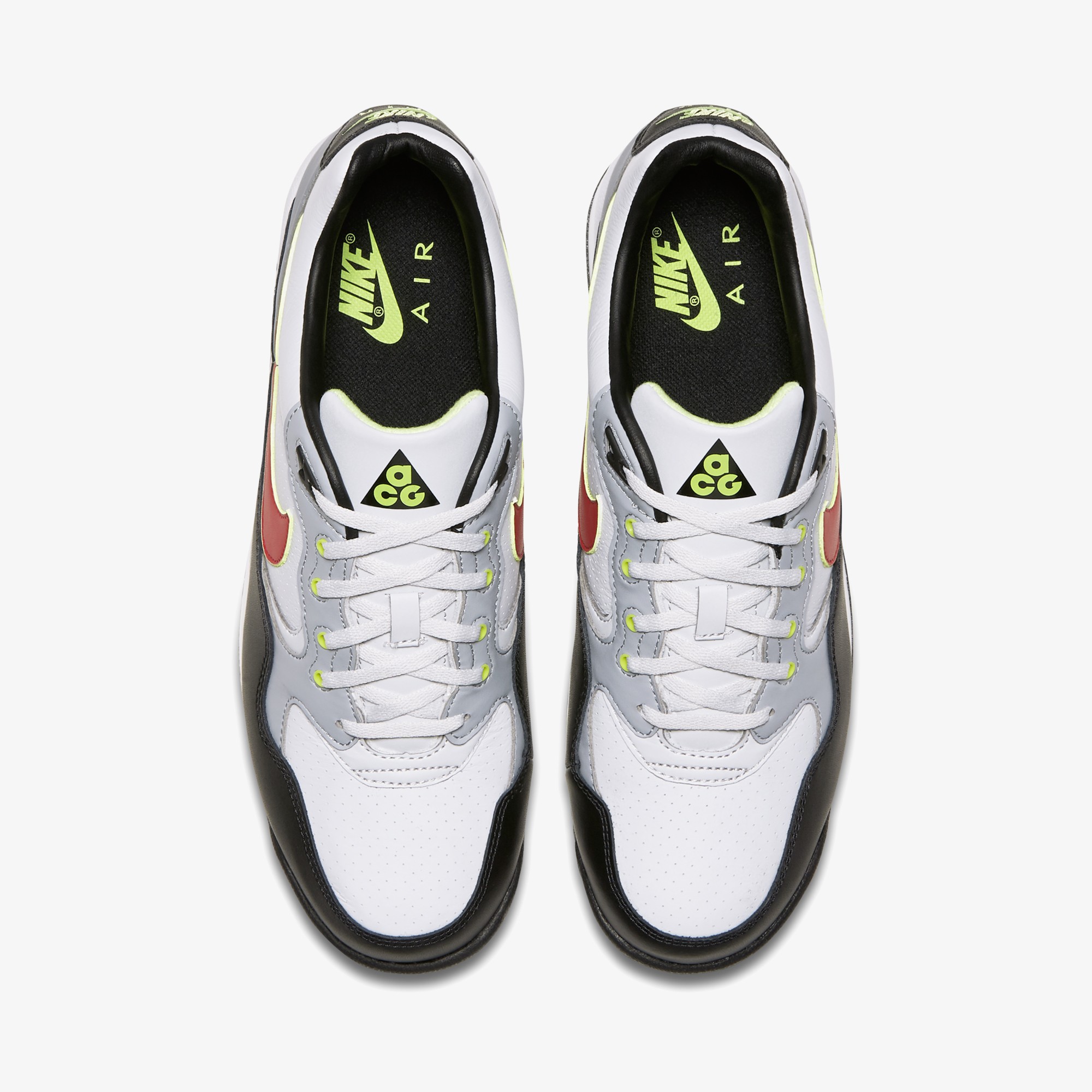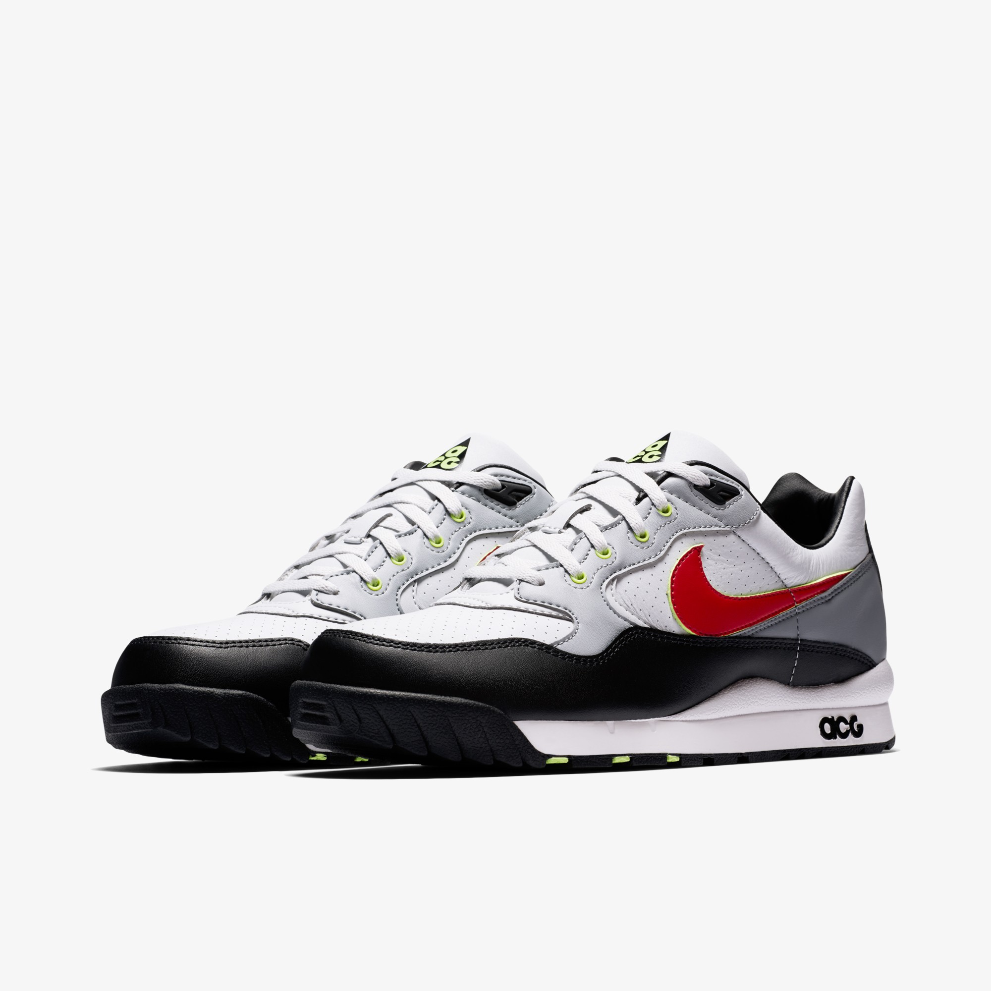 제품특징은 천연가죽 & 인조가죽 구조로 오리지널 모델 재현,압축 에어솔 유닛으로 쿠셔닝 우수합니다. 오리지널 ACG 브랜딩 디테일로 헤리티지 스타일 전달합니다. 뱀프와 쿼터 패널의 미세구멍으로 통기성 탁월합니다.