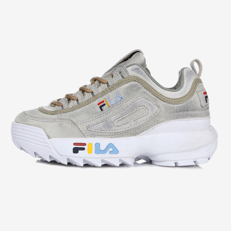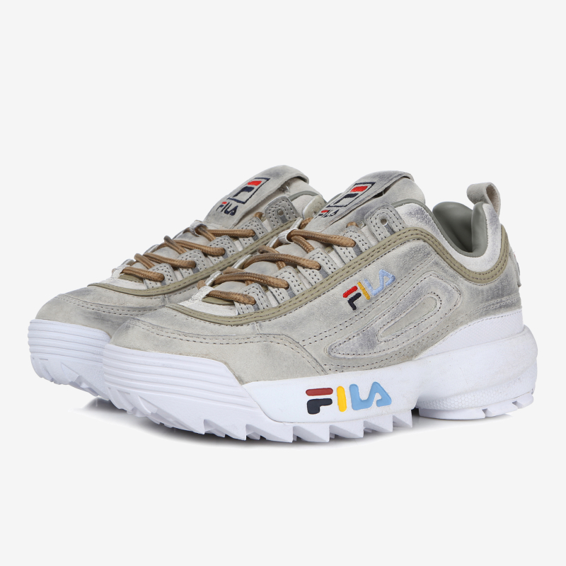 FILA를 상징하는 FLAG 패턴과 독특한 측면 디자인의 조화가 특징인 제품으로, FILA만의 HERITAGE 감성이 담겨있는 아이코닉 제품 입니다. 그리고 FILA DISRUPTOR만의 아이코틱한 톱니모양의 오버솔 디자인과 새롭게 워싱기법 처리를 통해 빈티지함을 구현한 제품입니다.