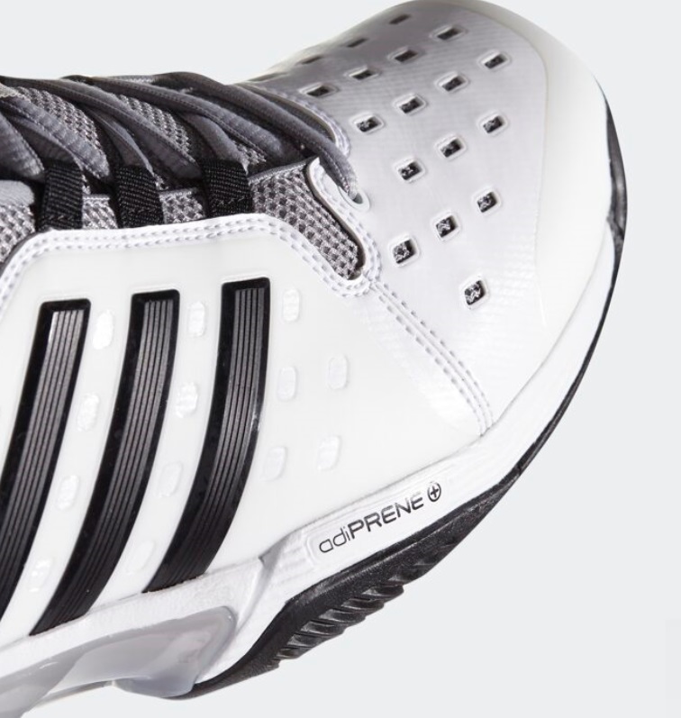 파워 플레이어를 위한 퍼포먼스 테니스화입니다. 그리고 안정감, 편안함, 통기성을 갖춘 바리케이드 메쉬 갑피 및 합성 소재 오버레이, 강화된 통기성과 공기 순환을 선사하는 갑피 천공, 발가락과 앞발 내측을 단단하게 감싸면서 서브, 발리, 급격한 측면 움직임 시 발끌림 현상을 막아주고 마모를 방지하는 견고한 아디터프(Adituff)가 적용되었습니다.