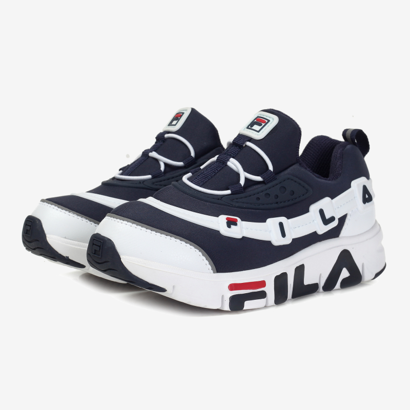 FILA 베스트 헤리티지 제품인 바리케이트의 아이코닉한 어퍼디자인에서 모티브를 딴 키즈 슬립온 운동화 입니다. 그리고 부드러운 네오프렌을 사용한 슬립온 구조로 신고 벗기 용이한 제품입니다. 제조국은 중국 휠라입니다. 그리고 제조년월는 2019.05월 이후 제작되었습니다.