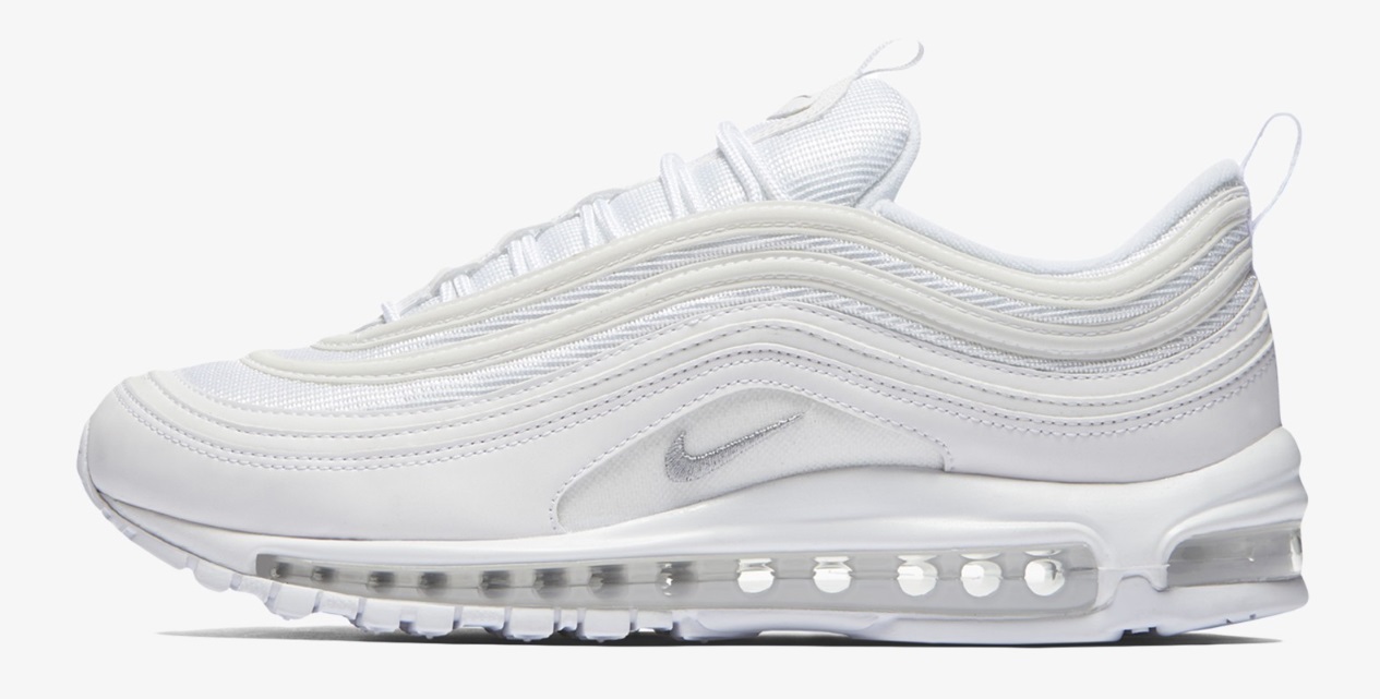 20 주년을 넘어, 미래로 나아가다. 나이키 에어맥스 97 남성용 신발은 에어맥스 97을 유명하게 만든 장본인인 특유의 물결라인과 반사체 파이핑, 그리고 발 전체에 적용된 맥스 에어 쿠셔닝과 같은 디테일을 그대로 간직하며, 그 계보를 이어갑니다.