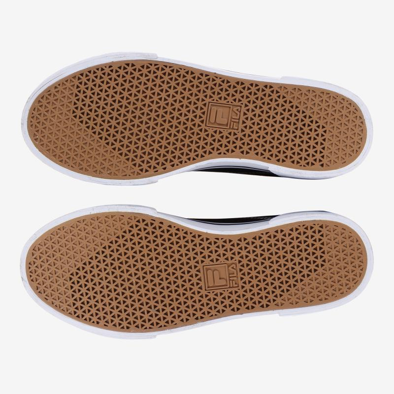 Outsole 조각 패턴은 접지력을 고려한 디자인입니다. 그리고 Midfoot 에는 휠라로고가 디자인 되었습니다. Outsole Material 은 내마모성과 내구성이 좋은 Rubber 재질을 적용했습니다.