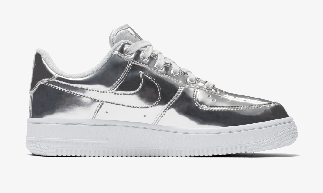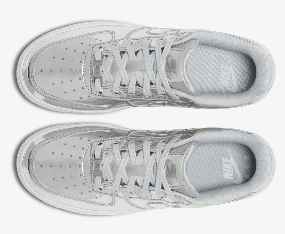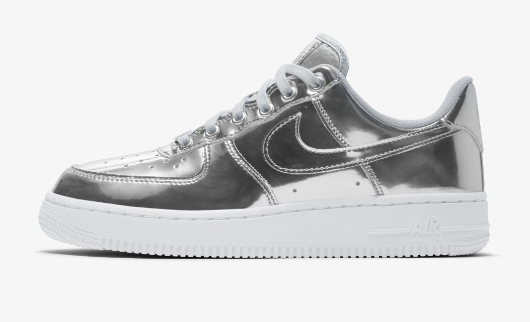 본 제품의 특징은 갑피에 사용된 인조가죽이 경량의 내구성을 선사하며, 클래식 에어포스1을 부드럽고도 메탈릭한 실루엣으로 감싸는 리퀴드 메탈마감과, 한층 푹신하고 부드러운 질감을 위해 새틴과 비슷한 소재를 사용한 설포의 안감을 적용했습니다.