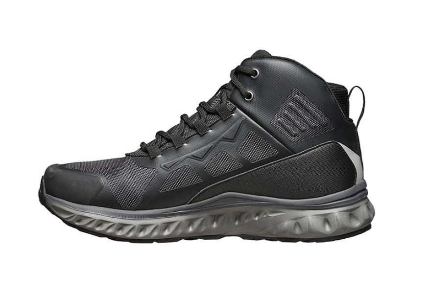 스포티한 워커 스타일의 라이프스타일 부츠 신발입니다. 그리고 일루전 미드솔은 이중경도를 통한 쿠셔닝 극대화 미드솔을 적용했습니다. outsole bottom의 조각패턴은 접지력을 고려한 설계 입니다.