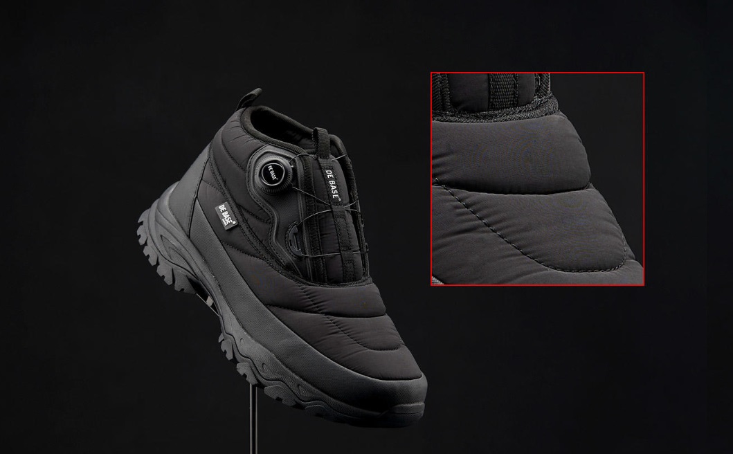 물기있는 눈길에 적합한 생활방수 원단, 어퍼(발등)부분에는 안감에 생활방수원단을 적용하여 발 안쪽으로 물이 스며드는 것을 방지하여 눈이 쌓인 겨울철에도 착용이 용이합니다. 또한 와이어가 적용된 발목부분까지 눌림 고주파 방식을 적용하여 입체감있게 디자인하였습니다.