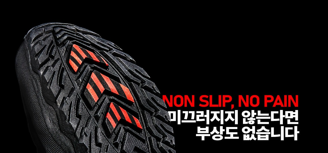 합성가죽이 발끝을 보호해줍니다. 신발 전체를 감싸는 아웃라인을 합성가죽으로 처리한 신발은 신발의 모양과 함께 걸을 때 발꿈치와 발 앞꿈치를 잡아주어 안정적인 발걸음을 제공합니다. 가죽의 단면이 보이지 않도록 말아서 마감 처리하여 신발의 내구성을 높였습니다.