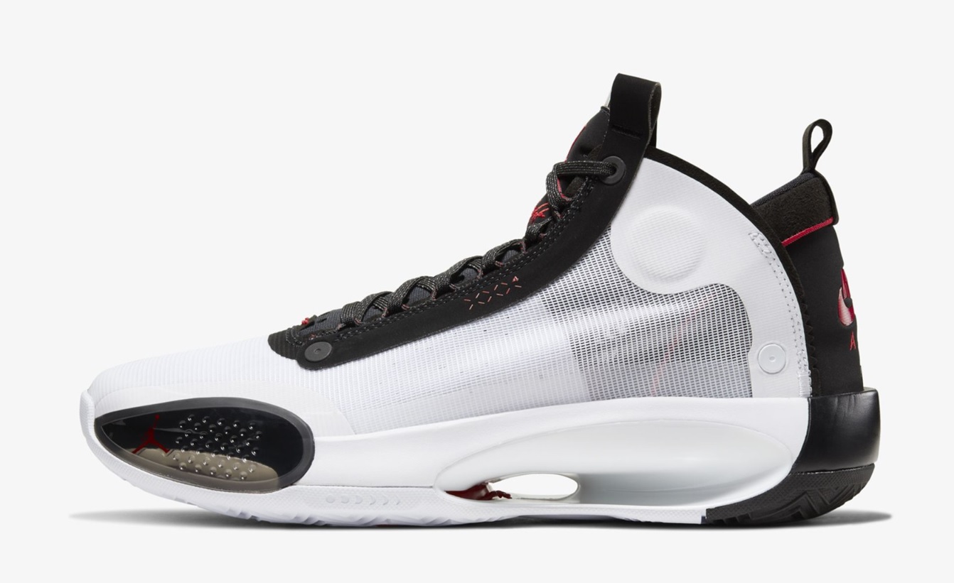 나이키 에어 조던 34 PF는 몰드 TPU로 만든 이클립스 플레이트가 몸이 옆으로 움직일때 안정감과 지지력을 발휘합니다. 구멍이 뚫려있어, 밑창을 통해, 내부의 줌 에어 쿠셔닝을 눈으로 확인하게 해주며, 동시에 신발의 전반적인 무게도 줄여 줍니다. 그리고 본 모델의 갑피 재질은 내구성이 좋은 합성가죽과 플라스틱, 텍스타일을 적용했습니다. 그리고 중창 재질은 가벼우면서 쿠셔닝이 좋은 파이론을 적용했습니다. 생산된 사이즈는 225-320 까지 생산되었으며, 제조국은 베트남 나이키 입니다.