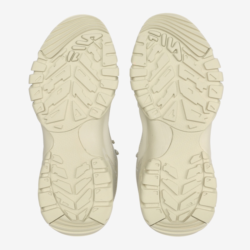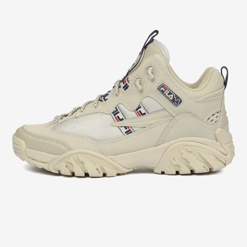 Upper Design은 클래식하며, Upper top shape 의 형상은 약간 벌키한 스타일이라 신발을 신고 벗기 용이합니다. 그리고 텅탑과 힐카운터 탑에 당김탭을 적용하여 신발을 신을 때 편리합니다. 그리고 퀘터의 휠라 로고 직조가 디자인 되었습니다. Outsole bottom 의 조각패턴은 Lugs type 으로 접지력이 좋습니다.