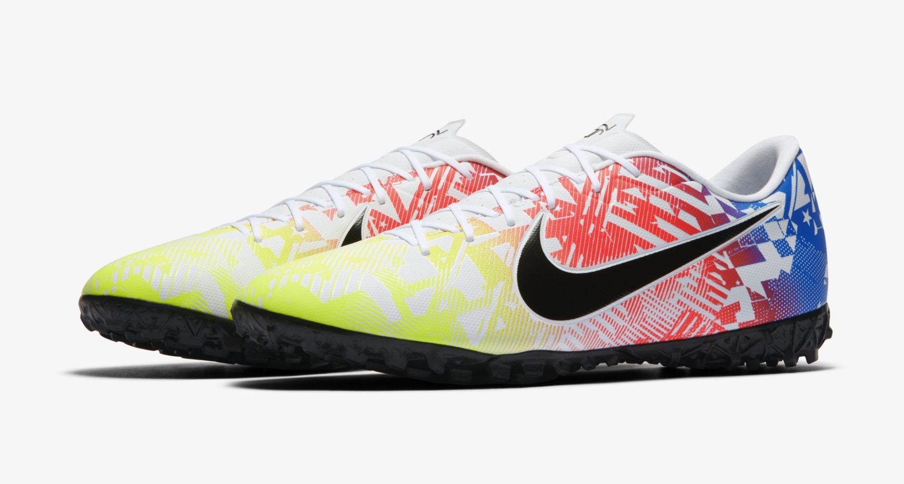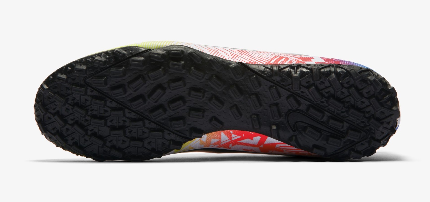 스피드를 부르는 정교함 그리고 네이마르 주니어를 위한 마무리, 나이키 머큐리얼 베이퍼 13 아카데미 네이마르 주니어 TF의 부드러운 갑피는 마치 또 하나의 피부처럼 발을 감싸며, 고무 밑창이 인공 잔디에서 뛰어난 접지력을 발휘합니다.