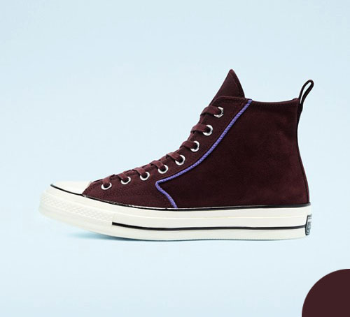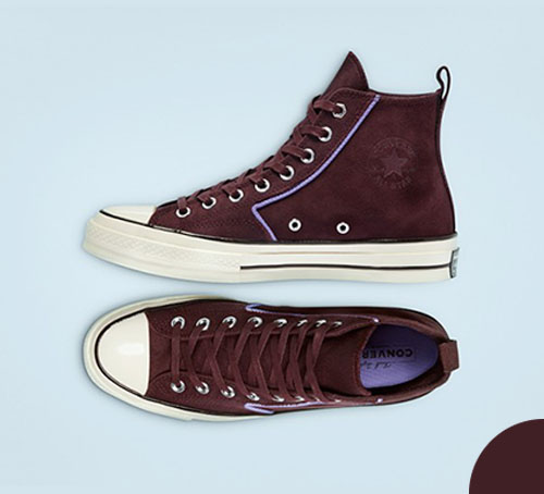 척 70 워크웨어는 밝고 빛에 반사되는 파이핑은 프리미엄 척 70에 강렬한 색상을 더해, 스웨이드와 캔버스이 조화되어 있는 톤 디자인과 대비를 이룹니다. 반면, 절제된 앵클 패치와 육각형의 상단 아일렛과 같이 워크웨어에서 영감을 얻은 디테일이 전체적인 룩을 완성합니다.