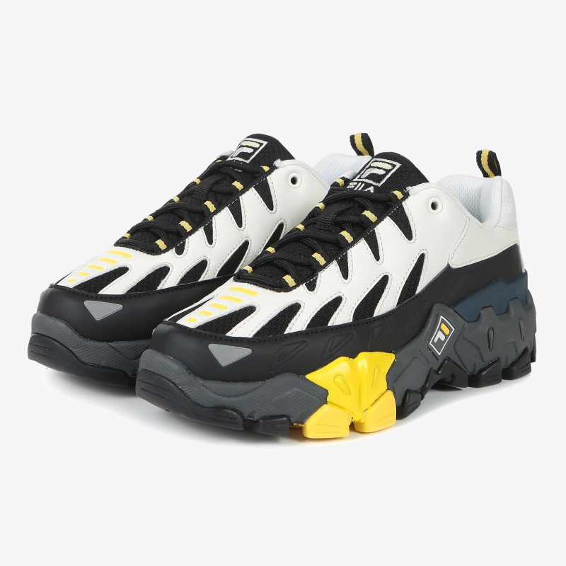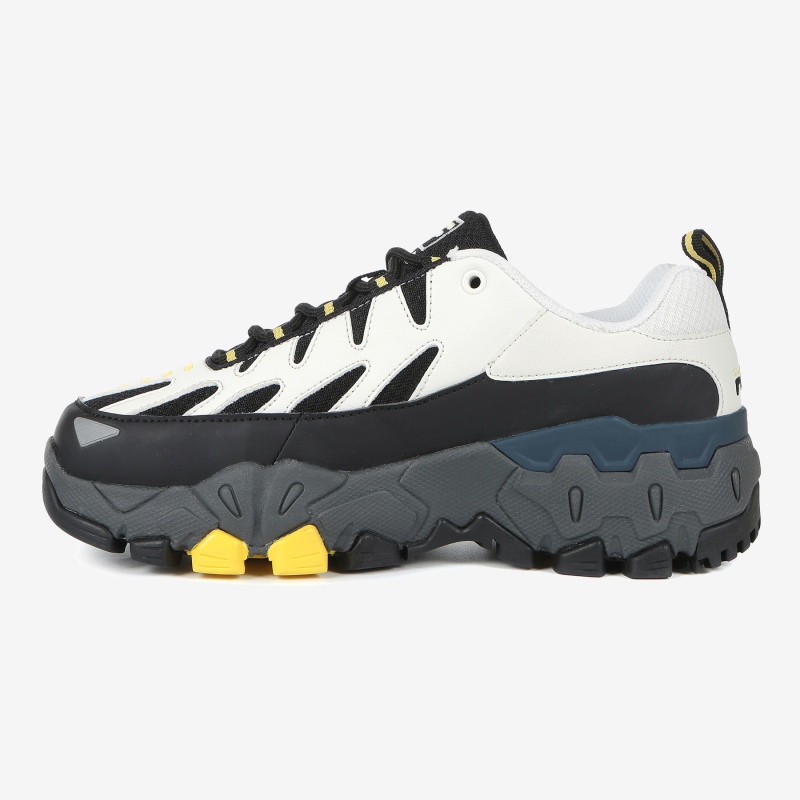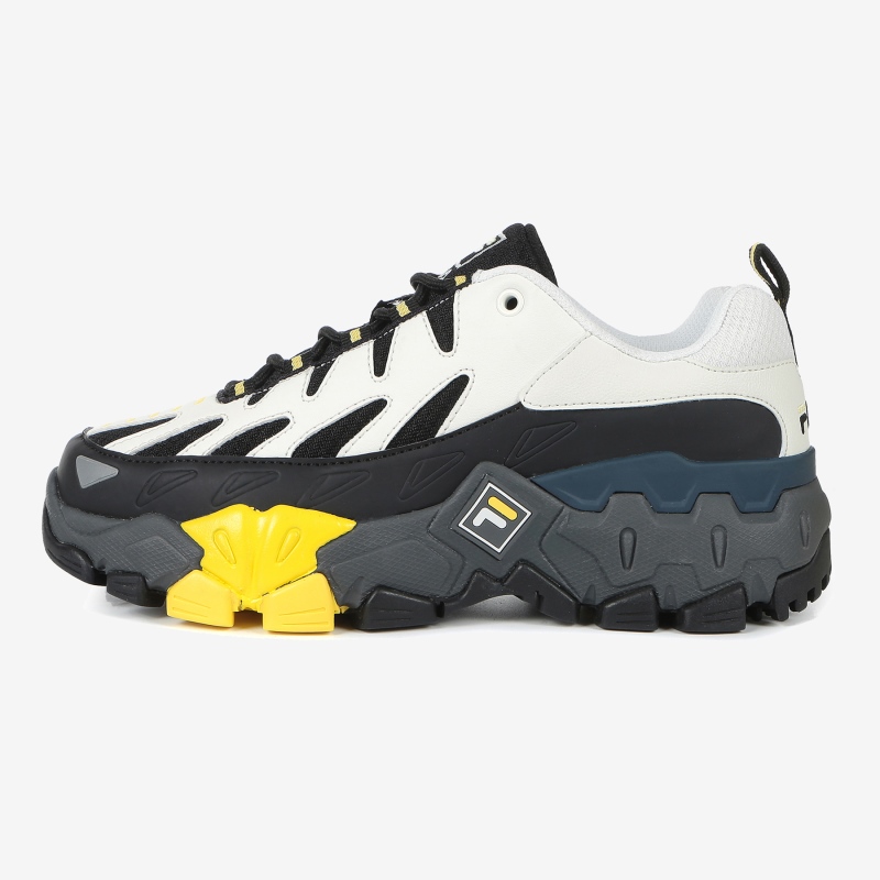 본 모델 휠라 레이드 로우 2000의 갑피 디자인은 클랙식하면서 어글리 슈즈 입니다. 업퍼의 발목 부위에는 패딩을 적용하여, 부드러운 착화감을 자랑합니다. 2000년도 처음 출시되었던 FILA RAID LOW를 새롭게 복각한 모델입니다. 그리고 RAVAGEMENT MAX시리즈에서 선보였던 트레일 솔을 차용하여 어글리 및 트레일 트렌드를 접목, 독특한 갑피 패턴과 컬러 감각이 돋보이는 제품입니다.