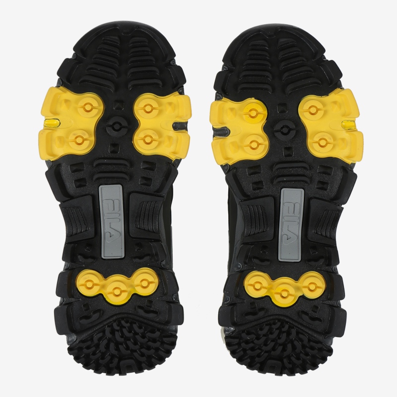 갑피 재질 Upper material 은 겉감은 내구성이 좋은 합성가죽을 적용했습니다. 그리고 안감은 폴리에스터을 사용했습니다. 밑창은 내마모성 및 내구성 합성고무을 사용했습니다. 힐카운터 탑 Heel Counter Top 에는 당김탭을 디자인하여, 신발을 신고 벗을때 편리합니다. 힐카운터에는 휠라 오버로고가 디자인 되었습니다. 토박스와 머드가드가 두껍게 신발 전체를 둘러 주어, 내구성과 보온성을 더했습니다.