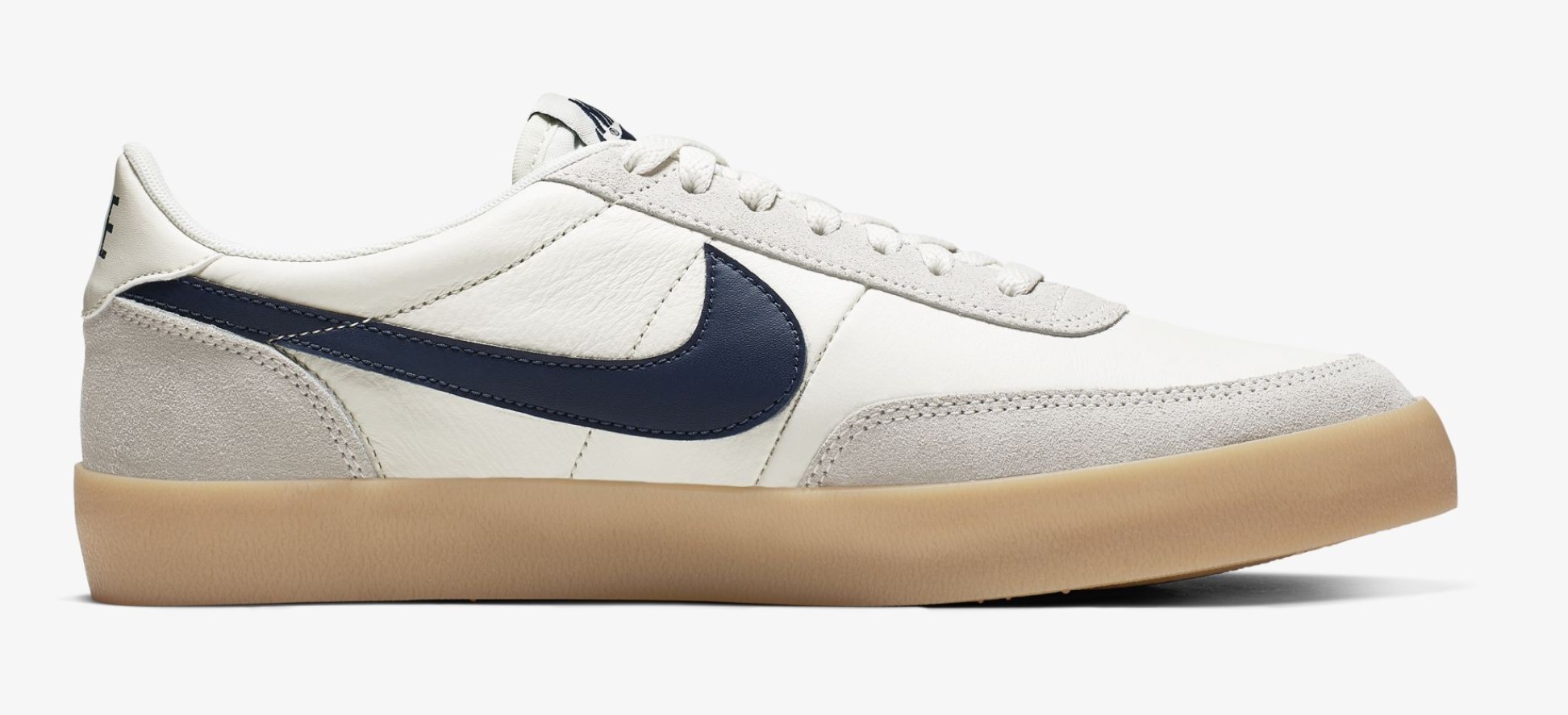 업퍼 디자인은 클래식하면서 심플합니다. Toe tip 과 Heel Counterd의 재질은 소가죽으로 그리고 갑피의 베이스 재질은 내구성이 좋은 합성가죽을 적용했습니다. OG의 로우 프로파일 테니스 신발에서 영감을 얻은 나이키 킬샷2는 다양한 텍스처의 가죽으로 갑피를 새롭게 재해석하여, 신선한 룩을 완성합니다. 그리고 부드러운 스웨이드부터 완벽한 광택의 매끄러운 가죽까지 코트 밖에서도 현대적인 감각을 자랑합니다.