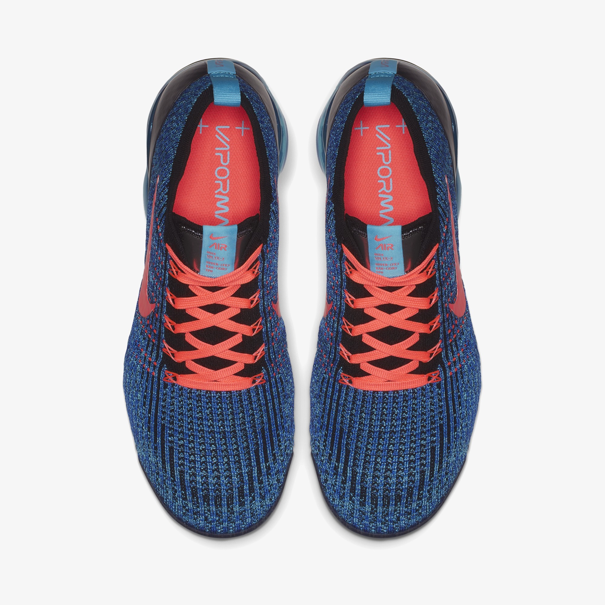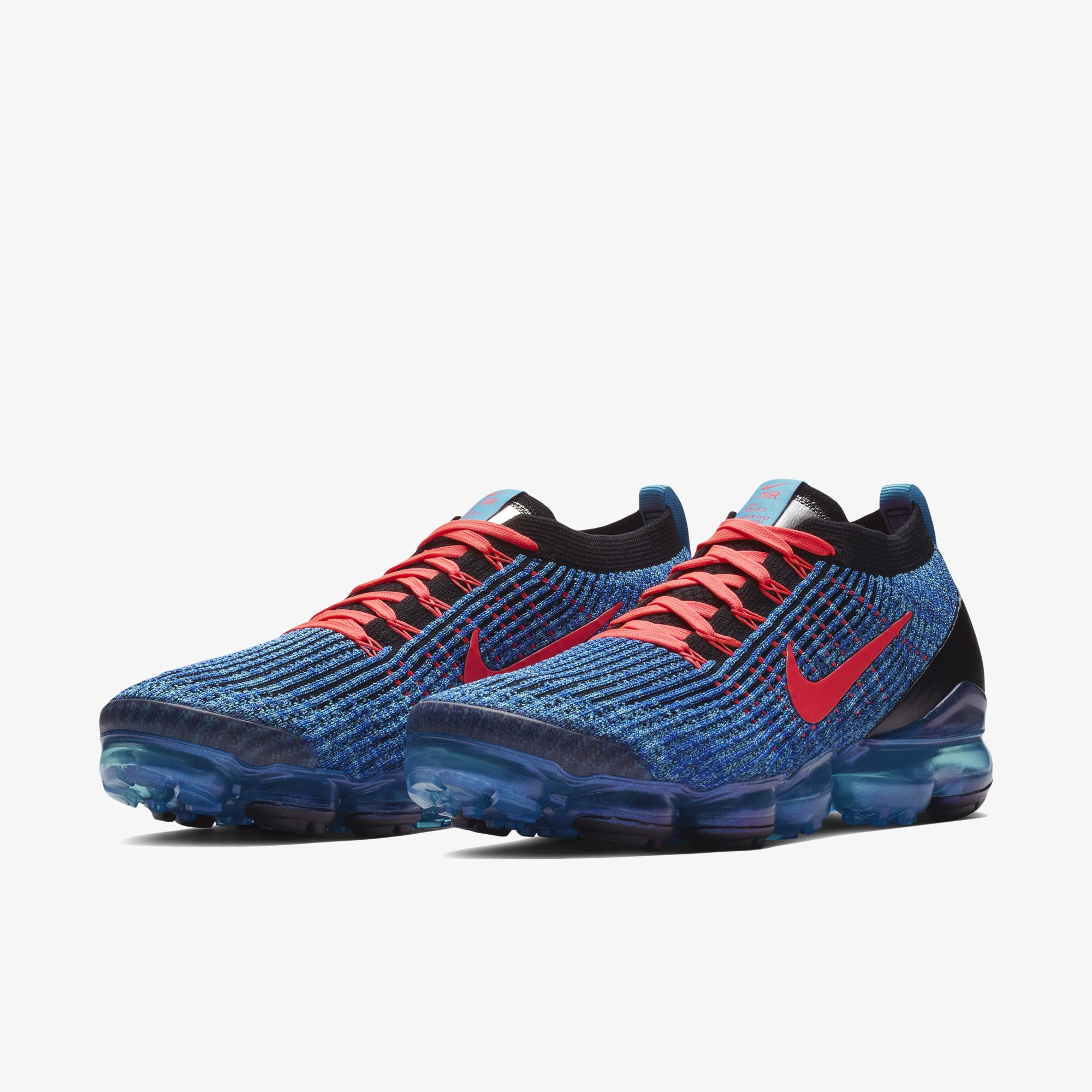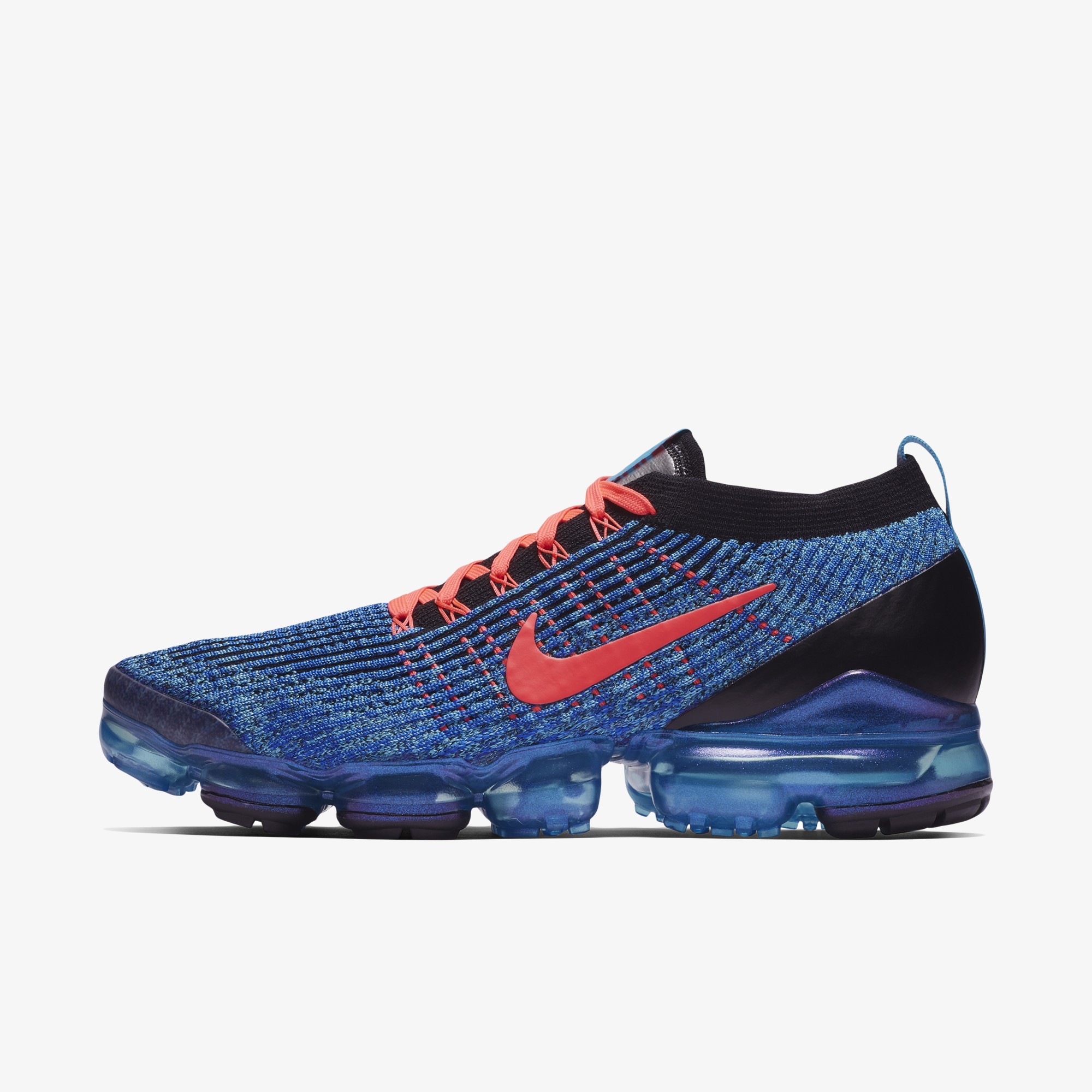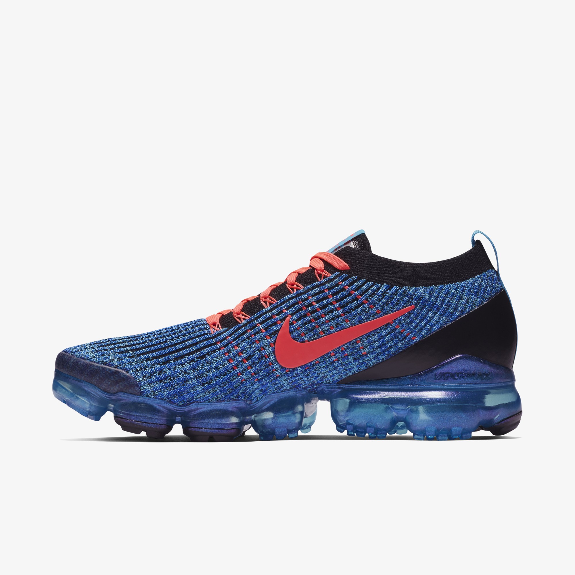 나이키 신발 에어 베이퍼맥스 플라이니트 3는 아폴로 우주복의 패치에서 영감을 얻은 설포 라벨,밑창의 통합형 돌기로 탄성감과 접지력을 향상 시켰습니다. 고마모 부위의 고무 포드로 내구성 강화했습니다. 본 제품의 색상은 블루 퓨리/플래쉬 크림슨/레이서 블루/블랙/메탈릭 실버 입니다. 사이즈런은 225-320 까지입니다. 제조국은 중국 나이키입니다.