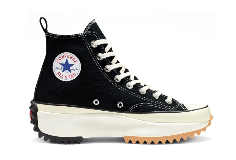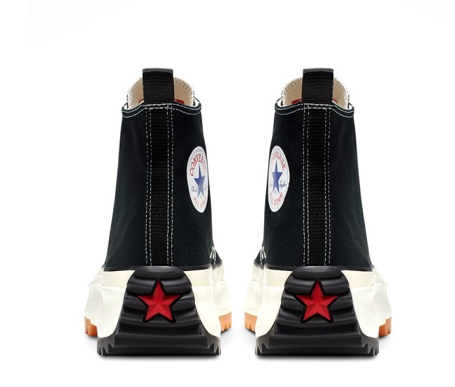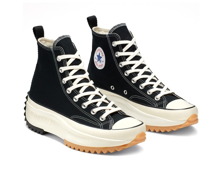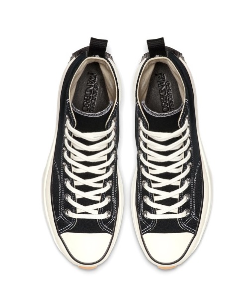컨버스 X JW 앤더슨 런스타 하이크는 블랙컬러 어퍼와 조화를 이루는 토널배색의 미드솔과 JW 앤더슨 로고 디테일과 러버힐과 스타포인트 디테일이 있습니다. 패치 아래에 위치한 컨버스의 탄생년도, "1917" 래터링 접목.토널 배색의 코튼 슈레이스 Shoelace