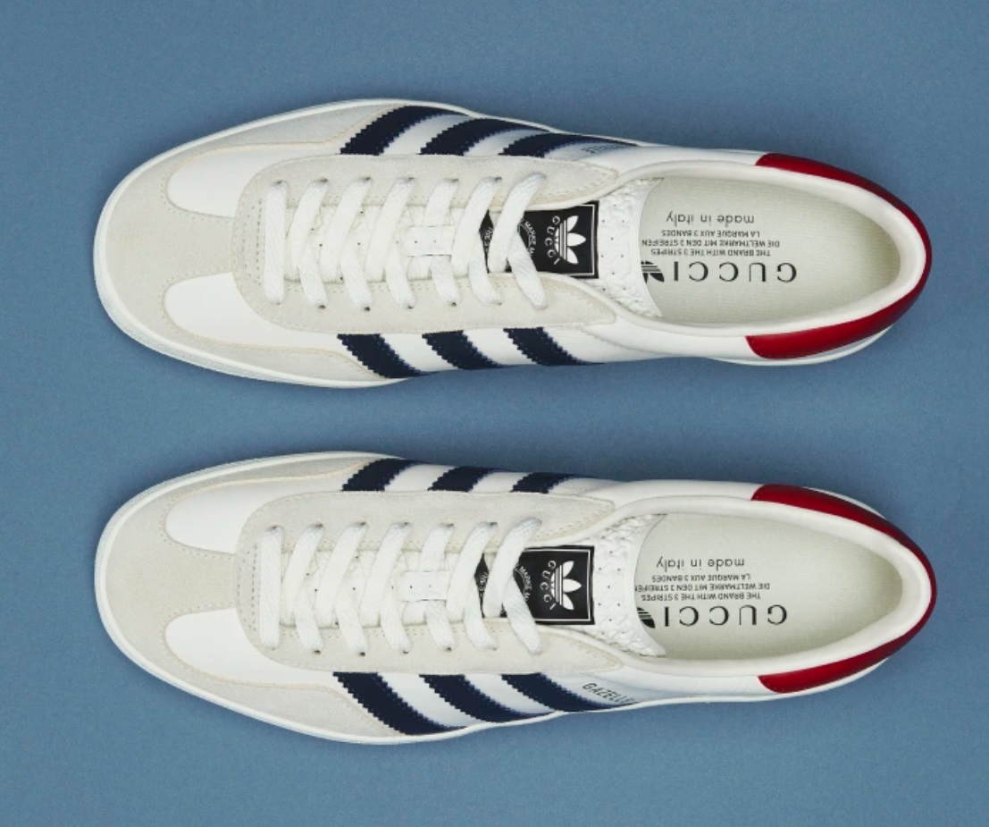 가격이 센 운동화 맨즈 아디다스 X 구찌 가젤의 운동화는 아디다스의 클래식한 업퍼 디자인과 구찌가 만난 제품입니다. 딱 봐도 가격이 높아 보입니다. 고급스러운 갑피 재질과 어퍼의 전체적인 날엽한 형상은 한눈에 쏙 들어옵니다. 본 제품의 제조국은 이탈리아 입니다. 제조년월은 2022년 1월 이후 제작 되었습니다. 제조자는 GUCCI 입니다.