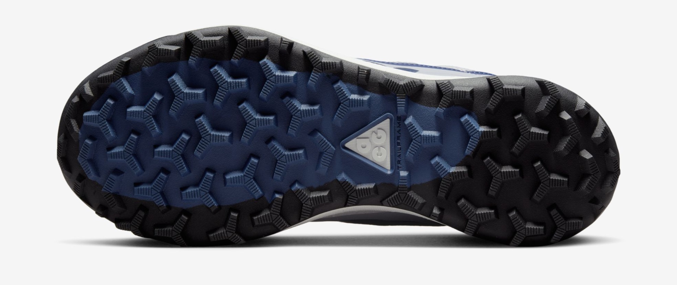 트레일 프레임 언더풋은 특히 무거운 짐을 운반할 때 지지력을 제공합니다. 조정된 러그 패턴이 적용된 고무 밑창은 오르막길, 내리막길 및 다양한 지면에서 접지력을 제공합니다. 제품의 특징은 중족부 웨빙이 핏을 고정, 설포의 풀탭을 사용하여, 쉽게 신고 벗을 수 있으며, 클립 인 포인트로로 활용 할 수 있어, 가방에 쉽게 부착가능합니다. 제조국은 중국 나이키 입니다.