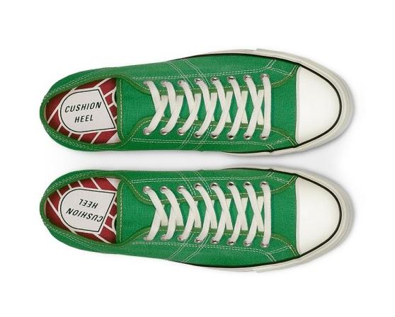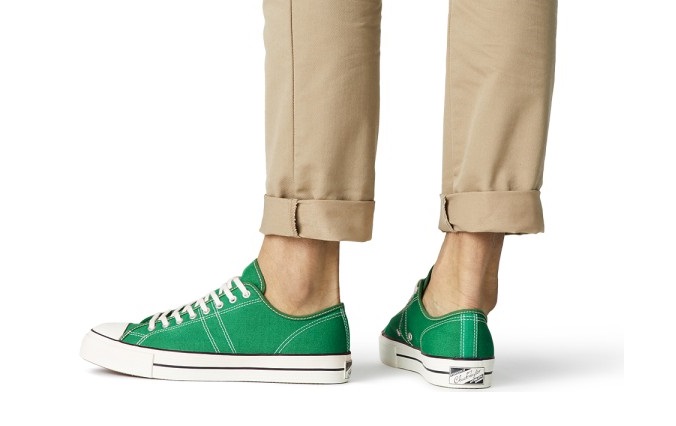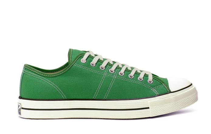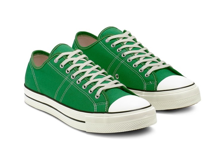 색상은 컨버스그린입니다. 빈티지한 스타일의 캔버스 업퍼이며, 대조되는 색상감의 스티치 디테일을 자랑합니다. 미드솔과 토부분에 있는 텍스쳐 디테일 디자인입니다.